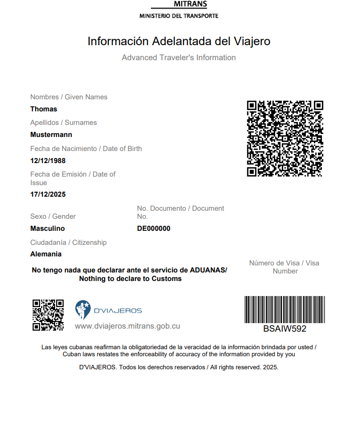 In Kuba: Sollten Sie es irgendwie ohne Code nach Kuba schaffen, müssen Sie es dort mühsam manuell nachholen, was zu langen Wartezeiten führt. Riskieren Sie das nicht.